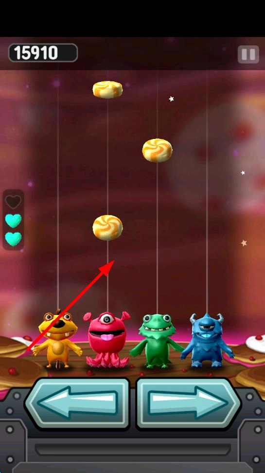 1. 下方有四只颜色各异的麦奇在等候,彩色糖果从顶部开始掉落,要留意颜色做好喂食准备。