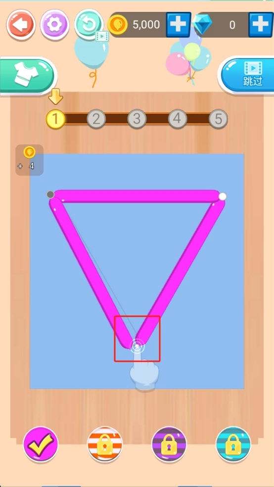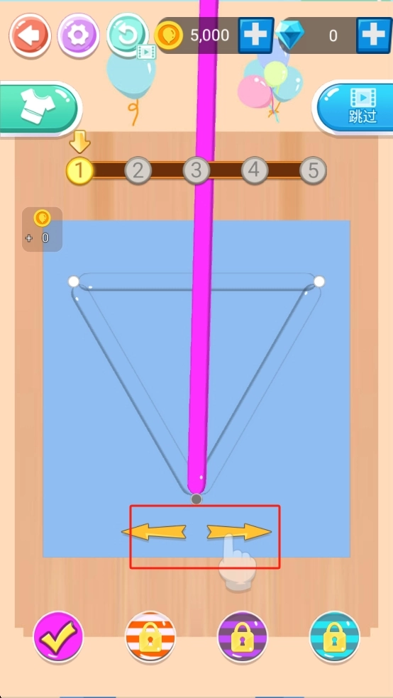 1. 游戏开始时,按照提示拖动下方的左右箭头,对粉色线条的路径进行调整,让它与三角形的轮廓相贴合,进而促使我们的气球逐渐成型。
