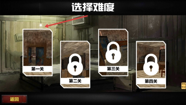 2、进入难度选择界面后,初始可选择第一关,该关卡可直接进入,其他关卡需完成前置关卡才能解锁,解锁后开启新的挑战。