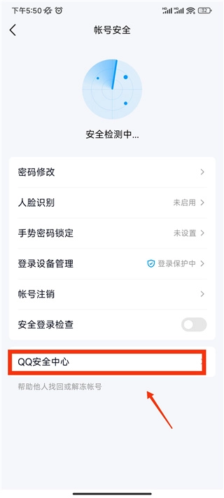 5、跳转至帐号安全页面之后,中间位置找到qq安全中心并点击;