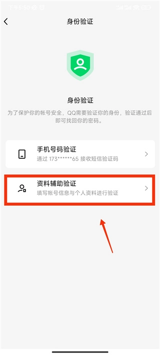 9、切换至资料辅助验证页面,中间位置点击开始验证,请好友用回执编号完成验证即可。
