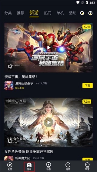 1、新游推荐:为用户推荐更多新鲜的游戏。
