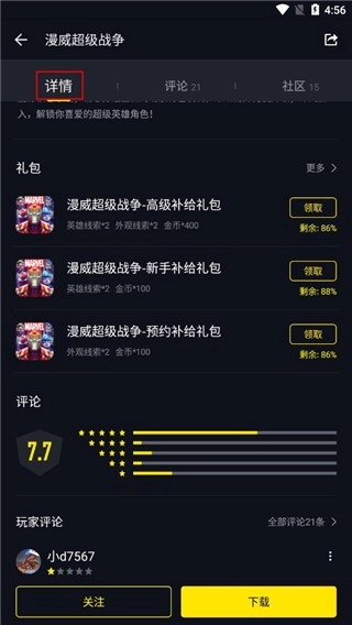 2、选择任意感兴趣游戏 → 向下滑动查看“活动/礼包”;