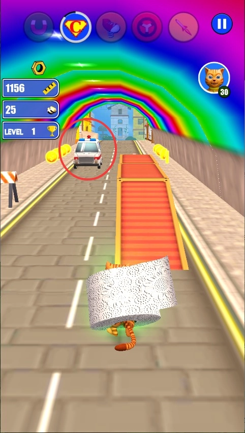 1. 创新角色设定,把可爱的手纸猫作为主角,在诸如都市地铁之类的场景中展开充满趣味的跑酷冒险。手纸猫的角色造型十分呆萌,动作也流畅自然。