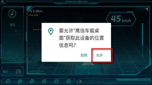 1. 安装鹰信车载桌面公众版,软件首次打开时,用户需点击“允许”方可进入。
