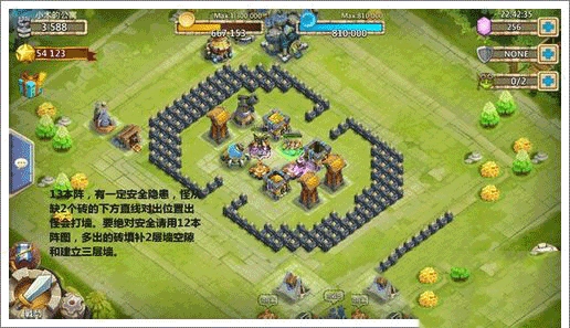 在城堡争霸游戏中,防守建筑包括哨塔、城墙、爆炸陷阱以及英雄陷阱四类。这四类建筑可以帮助城堡有效抵御其他玩家的入侵,而这四类防御工事的可建造数量同样取决于市政中心的等级。所以如何在有限的数量内,最高效率的布防,会是一项非常有意思的挑战。