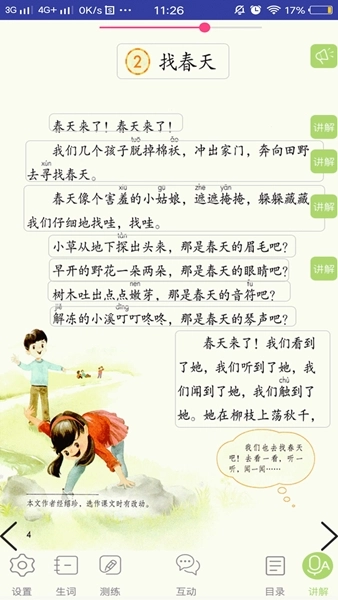 1. 具备语音朗读功能,只需一键就能实现课文点读,还能以标准发音朗诵全篇课文。