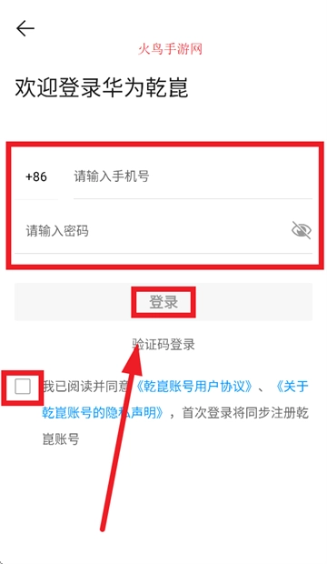 请输入手机号和密码,并勾选“我已阅读并同意《乾崑账号用户协议》及《关于乾崑账号的隐私声明》”。首次登录时,系统将同步为您注册乾崑账号,完成上述操作后,点击“登录”按钮即可。