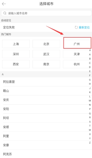 2、点击你所在的城市,去选择。