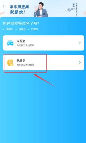 4、点击红框已报名卡片,获取匹配考试题库。
