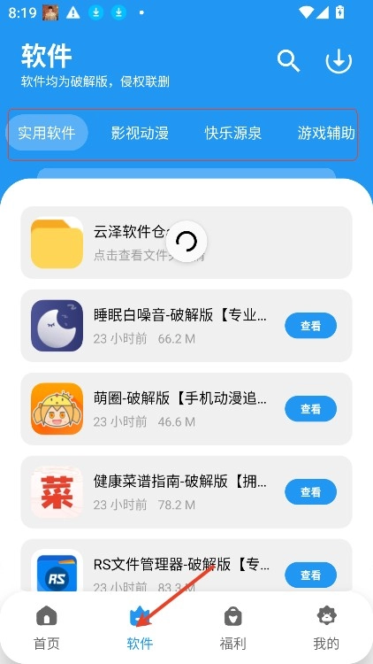 1. 开启云泽软件仓,进入软件板块后,便能直接对软件分类进行筛选。