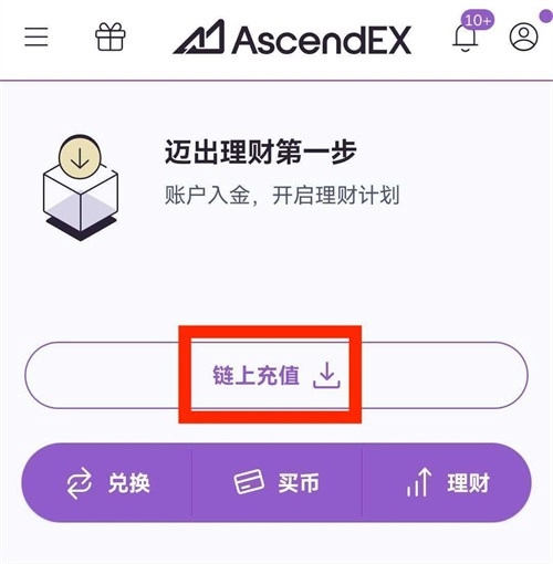 首页中部点击【链上充值】按钮进入充值页面。