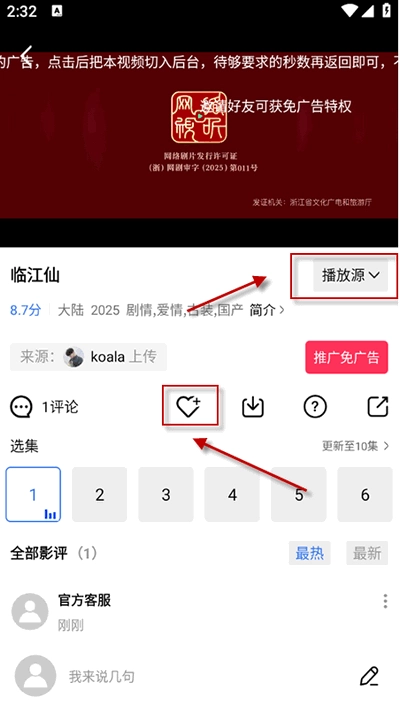 3、即可进行免费观看,如果不能观看切换播放源即可