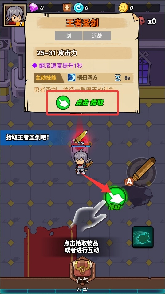 3、找到闪耀金光的圣剑标记时快速点击,角色将获得传说武器,战斗力得到显著提升。