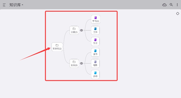 2、进入知识库界面,系统将以可视化导图展示日常、业余等多级分类结构。