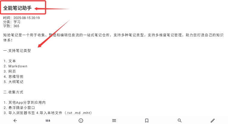 2、多模态编辑引擎支持文本、Markdown、思维导图等笔记形式自由切换,混合编辑模式允许在同一笔记中使用多种格式。
