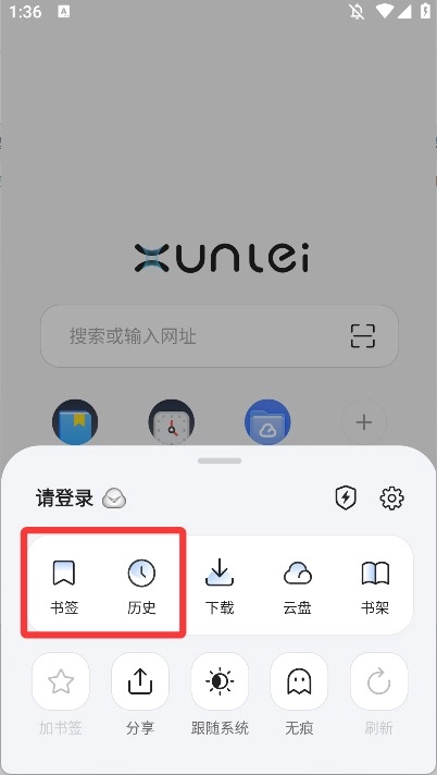 2、在这里可以看到我们的书签和历史浏览记录。