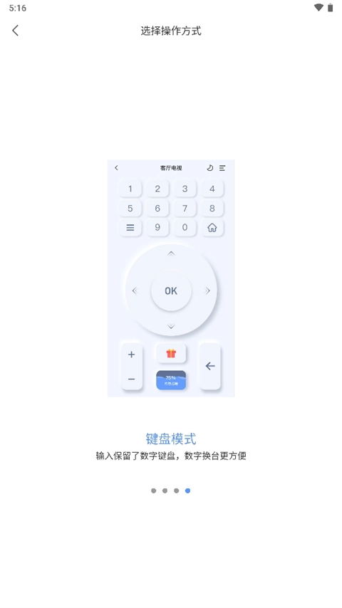 7、键盘模式中保留了数字键盘,让数字换台更加方便,用户想要什么模式,只需点击想要的蓝色模式字体即可切换相应模式。