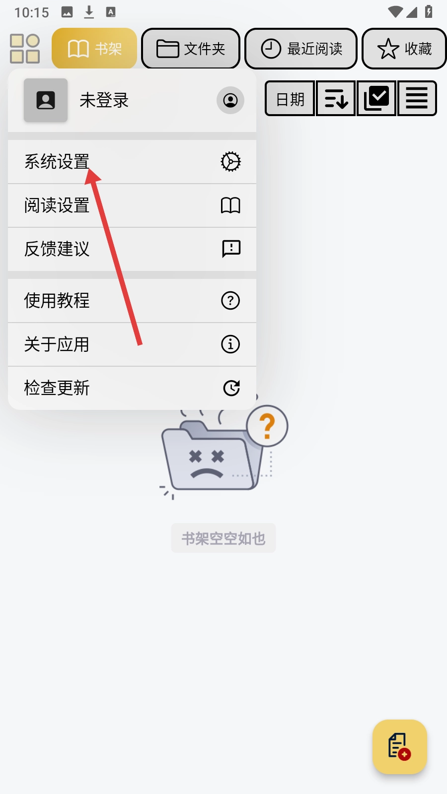 1. 在书架页面,点击左上角的【方块图标】,即可展开功能菜单。
