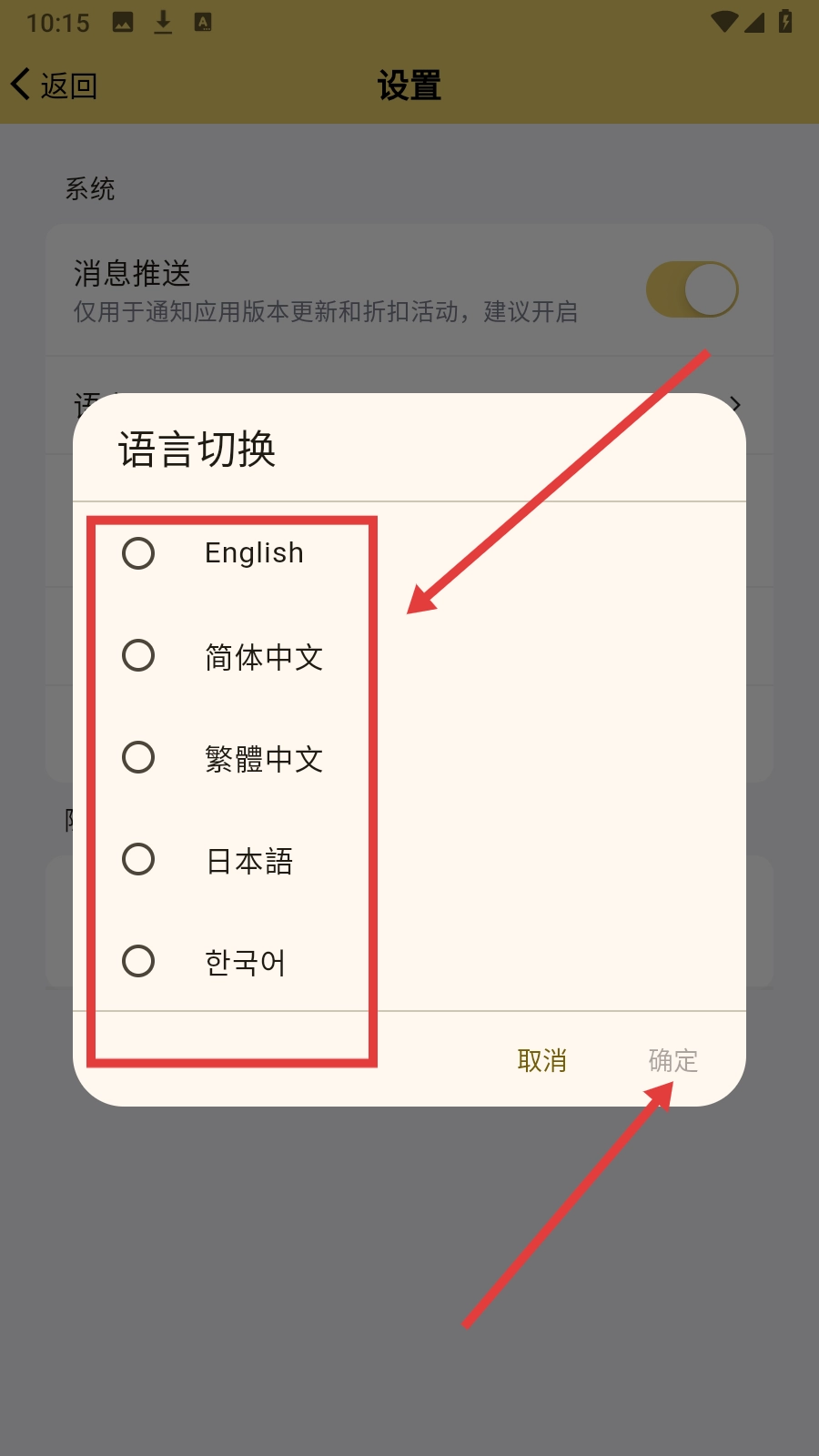 4、选择需要语言后点【确定】,即可完成语言切换。