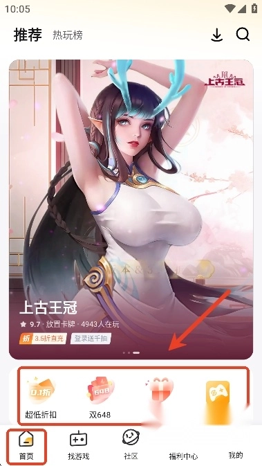 福利领取与折扣充值功能:设有“福利广场”板块,提供新人礼、代金券、周周领648元福利等活动,玩家可免费领取游戏礼包、平台币;支持折扣充值,部分游戏低至0.1折,充值后可获得高额返利,大幅降低玩家付费成本。