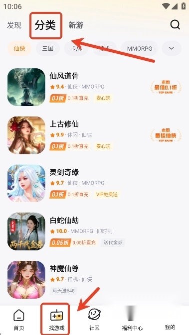 用户们也可以在找游戏页面通过游戏分类筛选出自己喜欢的游戏