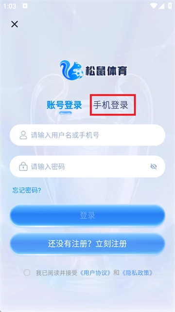 1、首先打开松鼠直播,阅读并同意 《用户协议》和 《隐私政策》;