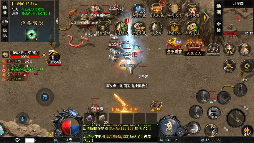 4、副本、挂机、活动均可掉落红装和稀有材料,装备无绑定、可交易。普通玩家靠挂机出货也能实现“躺赚”,是搬砖党的天堂。