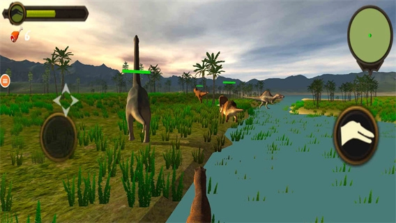 1、自由选择不同的恐龙类型,如:霸王龙、剑龙、等,与其他恐龙进行对抗或寻找其他恐龙作为伙伴;