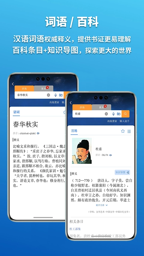 《辞海》是一款集字典、词典与百科词典多种功能于一身的学习工具软件。在这款软件中,用户不仅能够搜索各类繁简汉字相关内容,还可对诗词及现代词语展开搜索。它涵盖了当下常用的各种用法以及原本含义,并且配备音频读音与视频教学。众多功能为用户带来更为全面的汉文学知识内容,在日常生活中也十分实用。