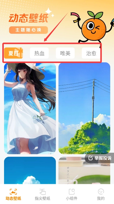 4、进入"动态主题"专区,可选择夏日、热血、唯美等多样化风格资源。