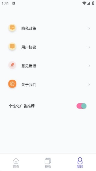 4、进入到我的界面,查看阅读隐私政策,用户协议,还可以进行意见反馈。
