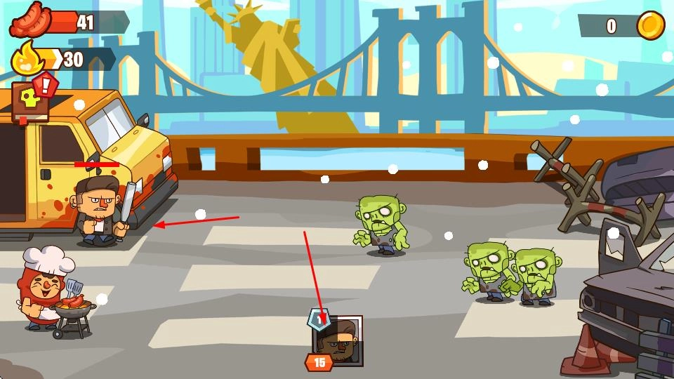 1. 在街头场景中,点击部署角色,使其移动到僵尸的行进路径上,角色会自动发起攻击,以清理僵尸潮。