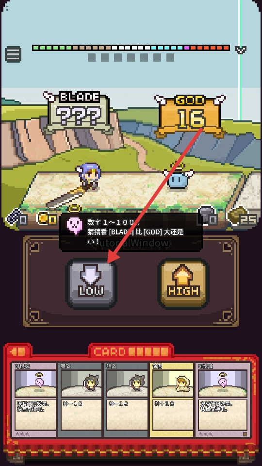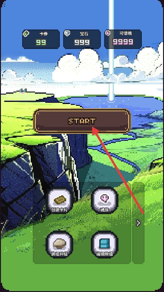 1、首先点击START开启,每个回合抛出卡牌猜测数字的大小,猜对了就能够狠狠揍怪物。