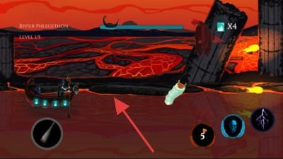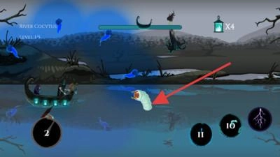 1. 驾驶小船于河流中航行,遭遇怪物时点击技能图标展开攻击,同时躲避障碍以推进关卡进程。