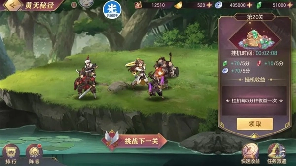 推图前,可以打一下黄天,然后升级一下,第10章的图需要一些战斗力的,不然新手容易卡关。