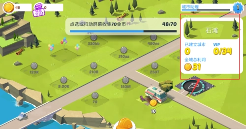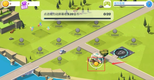 1. 借助点击或滑动动作,收集场景里四处散落的金币资源,这些资源可用于城市的建设与发展。