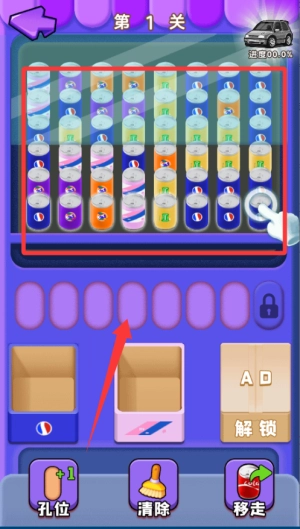 1. 进入关卡后,首先留意仓库里饮料瓶的颜色分布情况,着重整理数量占比较多的颜色。依照要求,把相同颜色的瓶子装入纸盒,以此完成打包任务。