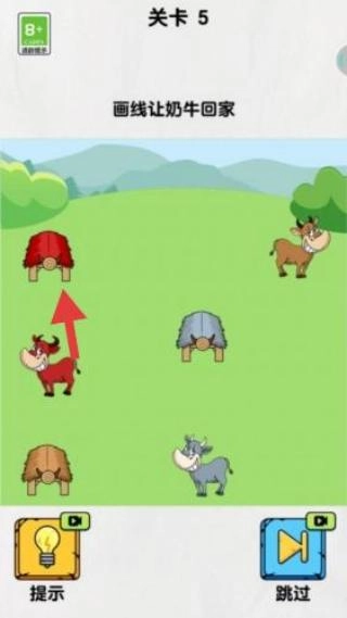 1. 明确目标:关卡任务为“画线让奶牛回家”,要将奶牛与对应的牛舍连接起来。