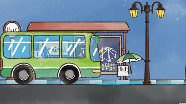2,然后你就在公交站,这里会有小人演示怎么玩,旁边有文字