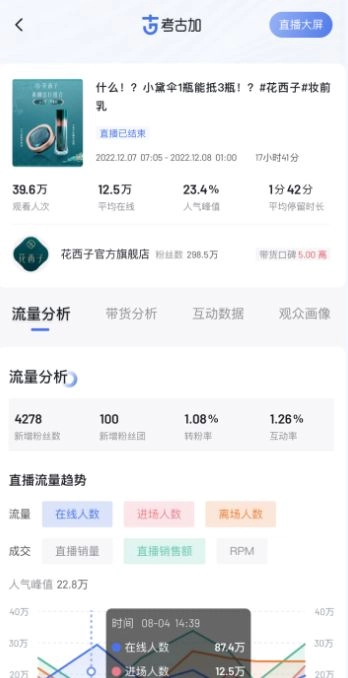 实时还原直播间流量趋势、带货趋势