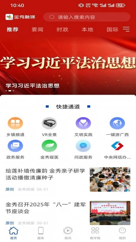 金秀融媒是一款拥有独特新闻媒体服务的平台,软件涵盖新闻报道资源超多,能够满足不同用户阅读新闻信息需求,让大家可以随时查看每日新闻动态,帮助大家精准掌握新闻细节与权威解读,获取更多重要的新闻消息;需要的用户可以直接来本站使用。