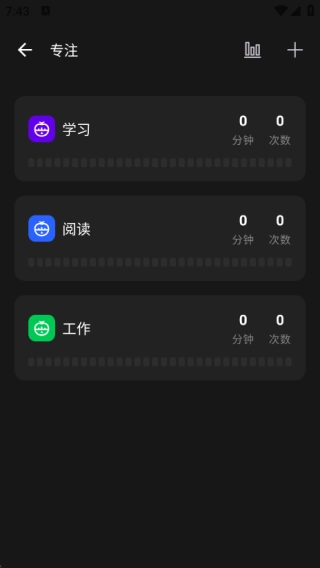 3、在专注页面中可以进行添加各类需要专注的事件,让用户可以轻松的添加;
