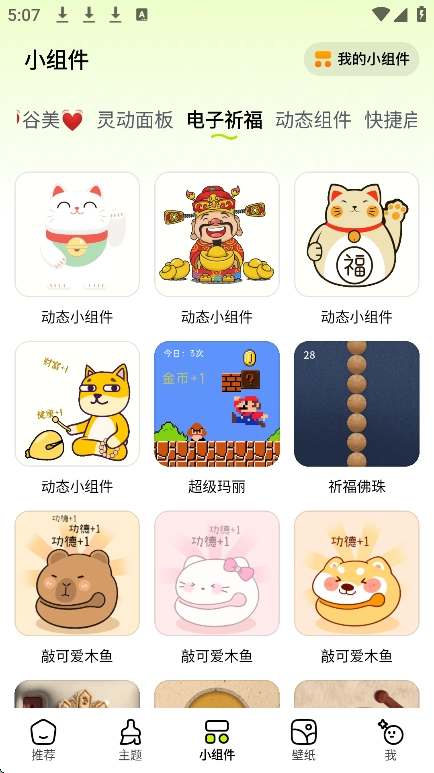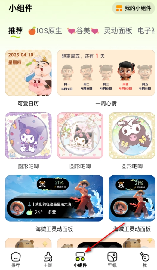 1、进入后,点击小组件,便能看到诸多资源。