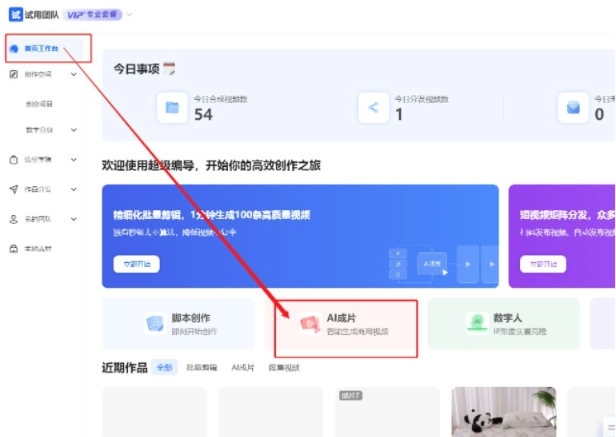 3、选取"智能视频生成"功能,创建新项目时需要输入创意文案并选择对应的行业领域