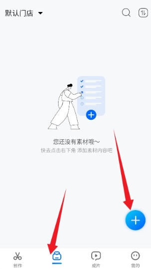 4、在素材管理页面,通过底部添加按钮导入设备存储中的多媒体文件
