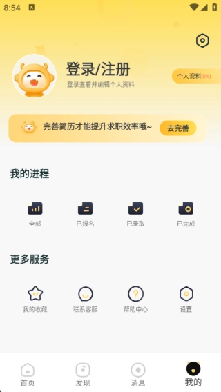 4、在我的页面中了解我的进程,同时提供超多不同服务在里面。