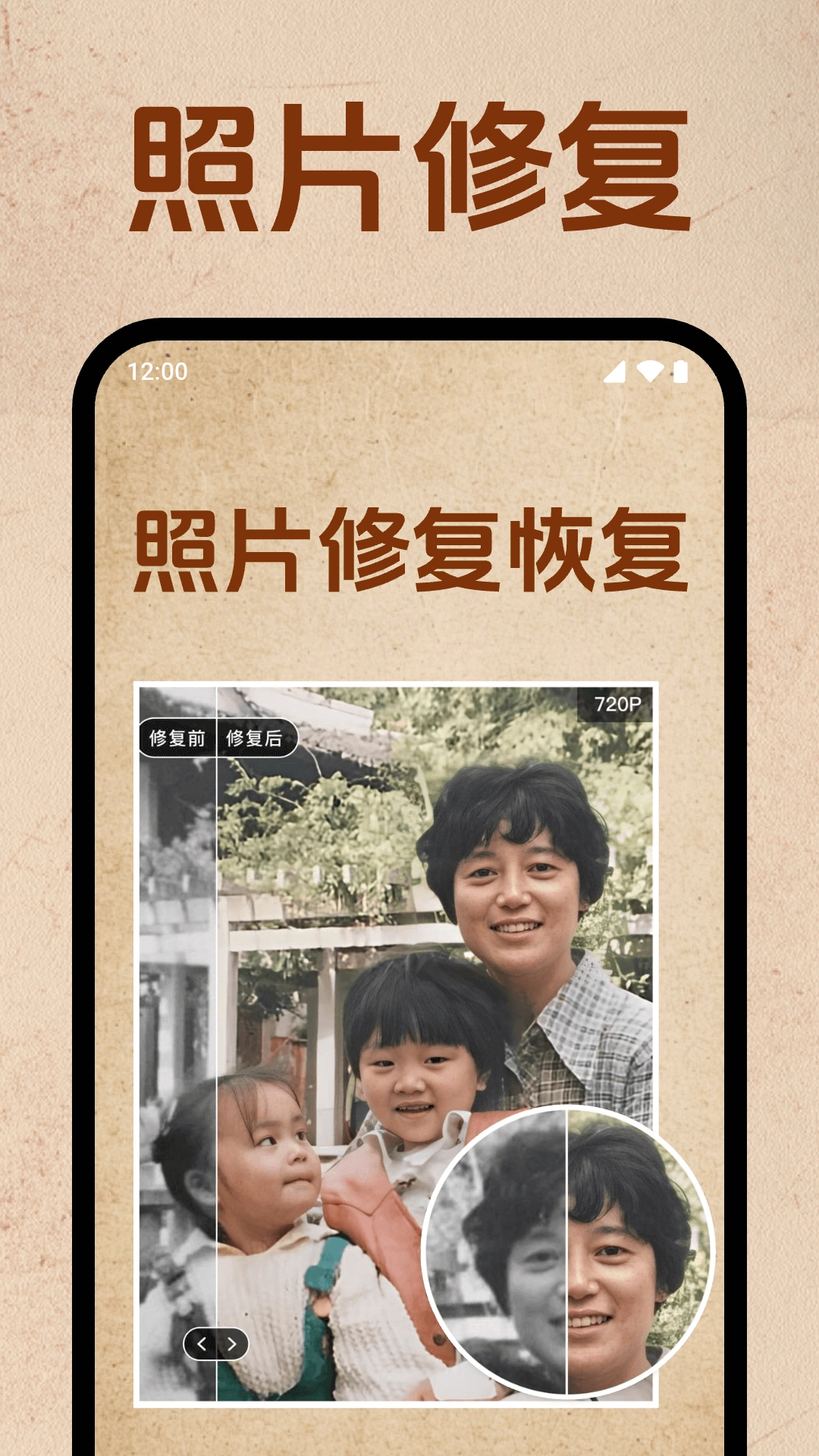 3. 只需几秒钟,就能智能修复老照片,让照片维持原始的较佳状态。