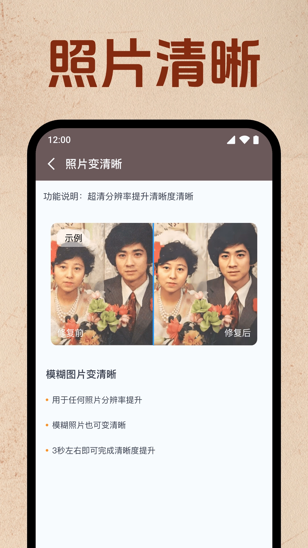 1.完全免费使用的修复功能,随时可以修复模糊的照片
