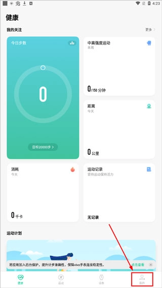 1、首先打开手机中的vivo健康,在主页面中需要点击右下角的“我的”。